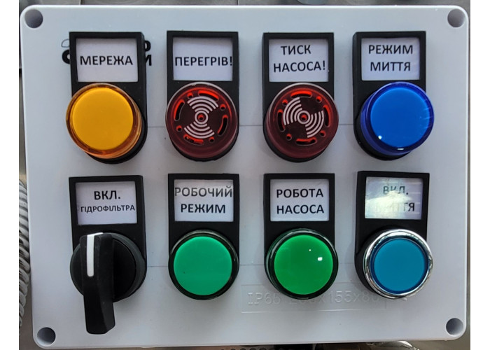 - сигналізація при зниженому тиску води на форсунках;